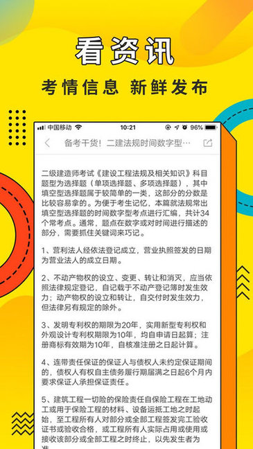 提供新的考试资讯,学员可以在资讯模块中查看到与考试相关的指南指导及相应的周边新闻,为考生的学习及考试安排提供指导。