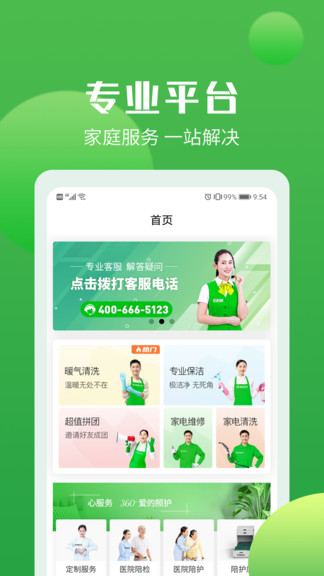 集家政服务、医院陪护(陪检)、定制服务于一体,解决用户在生活中遇到的家政、帮护难题。