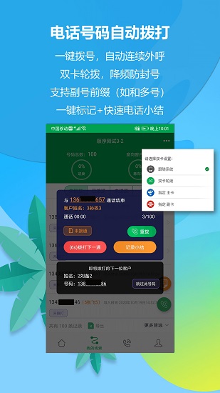 自动拨号:无需电脑,手机安装APP即可开展您的电销任务。