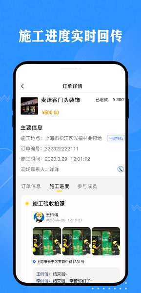 1.使用的进度实时更新,客户能实时了解施工的情况,掌握详情