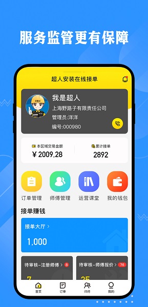 超人云监工服务端为安装技师人员提供了一站式接单服务功能,可以在线轻松接单赚钱。及时处理客户订单信息,查看项目进展、在线完成施工交易等等。功能非常多,使用起来方便、灵活。有需要的用户欢迎下载使用。