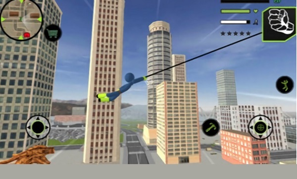 火柴人队长,扮演勇敢的火柴人队长,执行一系列的作战任务,游戏以美国的繁华中心城市为背景,玩家在游戏中需要操控火柴人使用手中的绳索,快速接近目标,与敌人展开搏斗,最终制服这些城市中的法外之徒!