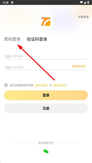 1、在石料帮登录页面,点击密码登录,切换至密码登录模式。