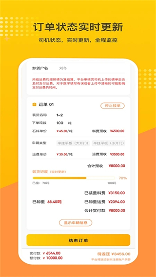 6、实时且丰富的数据统计中心,数据统计页面划分统计了平台承运、非平台承运以及我要找车的数据栏目。