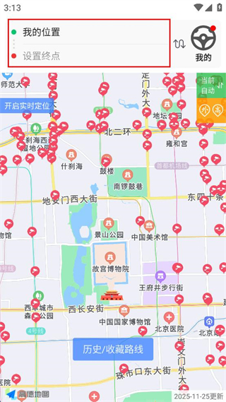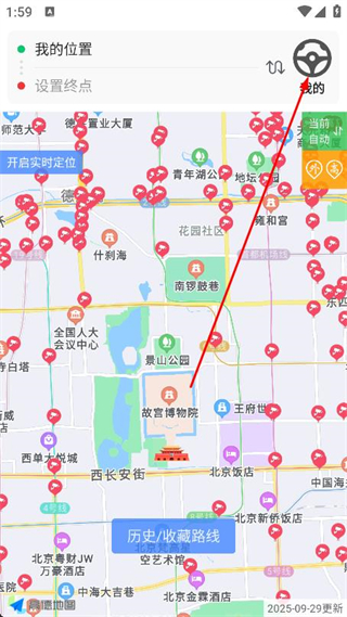 4、返回高德地图主界面,可在我的位置和设置终点区域,进行位置相关的路线规划操作。