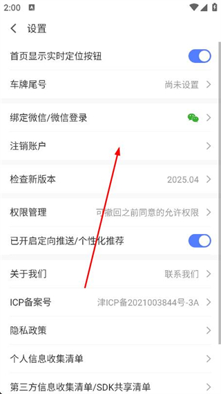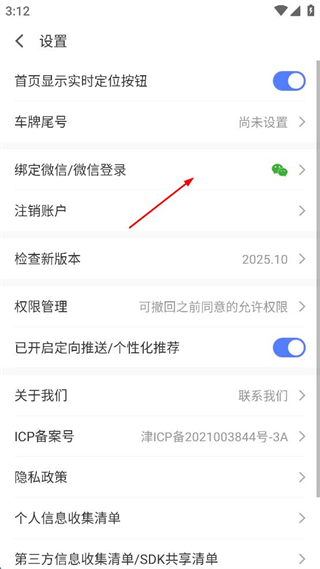 3、进入设置页面,找到绑定微信/微信登录选项,可查看或管理微信绑定的相关信息。