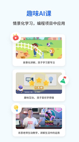 3、交互式剧情动画,孩子易学爱学。双师陪伴教学,手机上课;