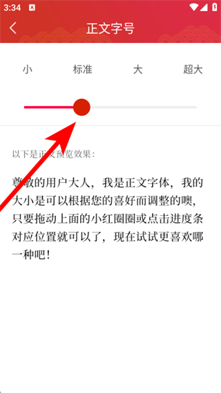 3、在正文字号设置页面,拖动滑块调整至合适的字体大小即可。