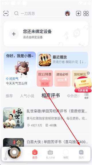1、打开喜马拉雅穿戴APP,点击底部导航栏的我的选项。