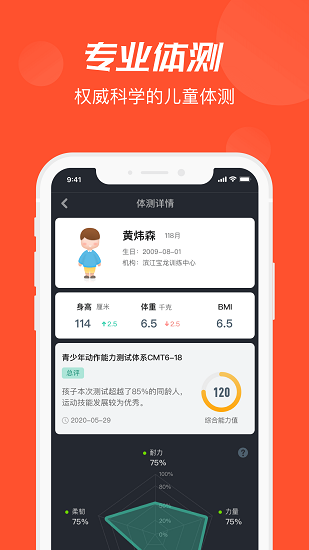 权威科学的儿童体测;记录分享孩子的成长运动风采;