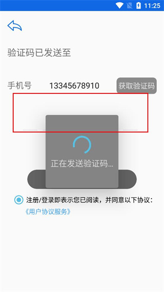 4、等待页面显示验证码已发送的提示,等待验证码发送完成后准备输入验证码。