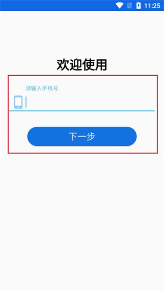 3、在登录界面的输入框中填写对应的手机号码,填写完成后点击下一步按钮。