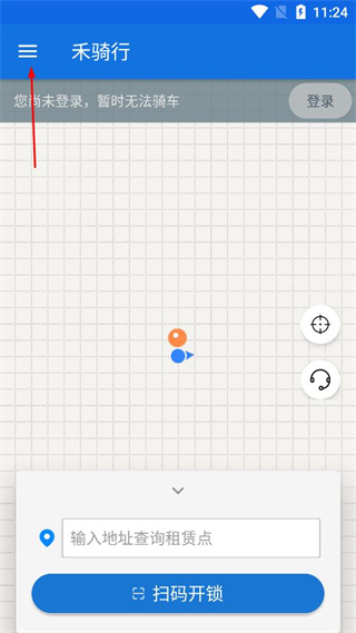 1、打开禾骑行软件,点击页面左上角的菜单按钮,展开个人相关功能选项列表。