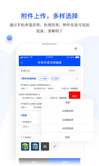 可通手机上传:文档、图片、视频、可以使单据信息更清晰