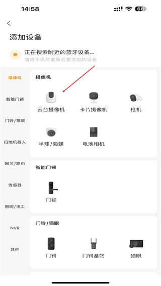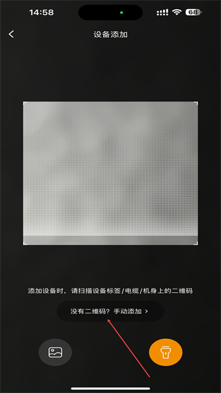2、在扫码页面点击没有二维码?手动添加按钮,跳转至设备类型选择页面。
