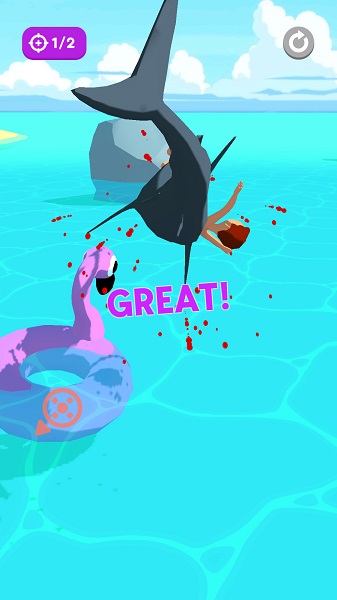 在游戏中,玩家变成了一条凶猛的鲨鱼,上至海鸟,下至水中各种鱼类。