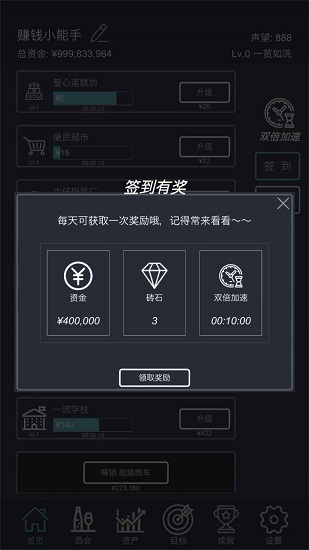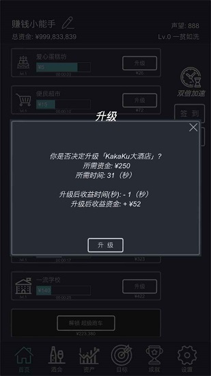 3,开局首先需要通过倒卖来赚钱,赚到一定钱之后就会解锁投资、公司等,玩过一局就不用再解锁了。