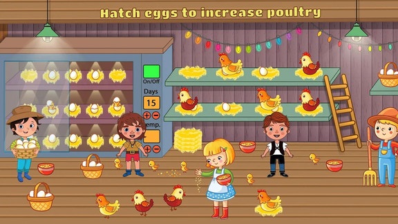 你将有机会在你的农场进行多种动物喂养,小鸡、孔雀、绵羊等。对于初级农产还可以通过工厂进行进一步加工,加工成鸡蛋粉、面包、蛋糕等。