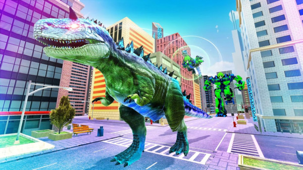 c.你将面临大量恐龙机器人的冲击。你将扮演一个变形机器人恐龙来保护这个巨大的三维模拟城市。