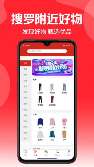 趣众淘,作为本地移动生活购物类平台,可查看附近的商店优惠信息、商品搜索、浏览、购买、配送等功能,专注服务本地生活圈,促进线上购物与线下实体店零售模式融合一体,重新定义网络购物新模式,让用户更好的发现周边好物,让购物更便利。