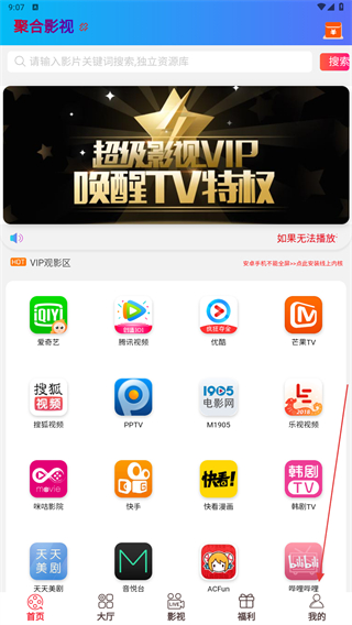 1、启动聚合影视的应用,进入首页点击右下角我的图标。