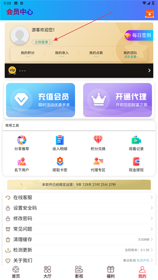 2、进入会员中心的页面内,点击用户昵称下立即登录的按钮。