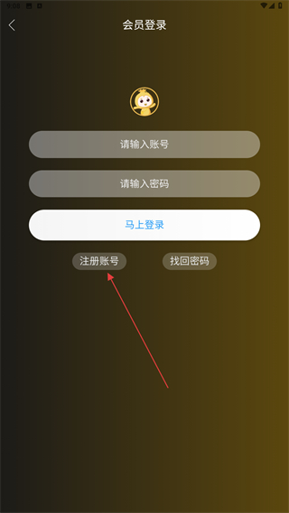 3、进入会员登录的页面内,再次点击下方注册账号的按钮。