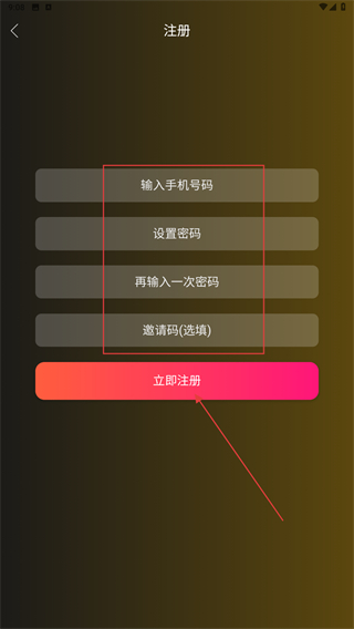 4、输入手机号、密码以及邀请码后,再点击立即注册即可。