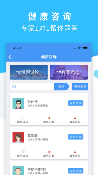 app为用户提供了在线咨询的功能,有专家医师在线提供了指导和咨询
