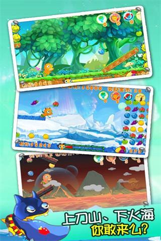 游戏中,你要跳过障碍躲避天敌,并尽可能在游戏中得到的所有奖金和水果.要记住哦~小恶魔不吃水果可是会饿死的哟!所以尽情的享受水果大餐吧!