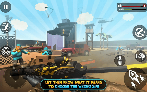 一款射击枪战类型的动作冒险手机游戏,游戏采用独特的皇室战争作为游戏背景,以经典的多人射击作为游戏的主要玩法。在游戏中,玩家可以挑选各种不同的战斗模式,通过击杀敌人来获取更好的武器