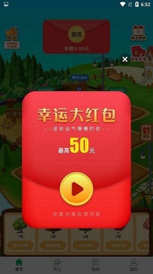 1、通过模拟农场种植果树,不断获得红包和各种奖励。