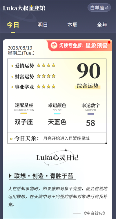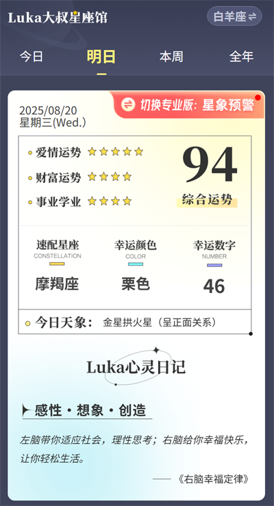 来Luka大叔星座馆,每天提前帮你预测这一切!