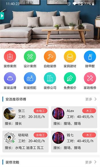 我惠装大师主功能是找装修公司、找专业师傅、找设计团队、找材料,老百姓一站式装修平台,如果您有以上需求,就上我惠装APP!