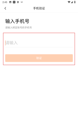 4、在手机验证页面输入绑定账号的手机号,点击验证即可找回账号。