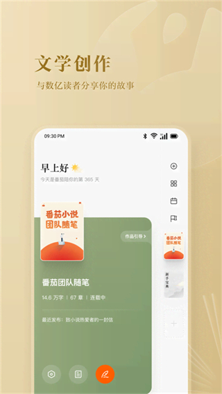 番茄作家助手专为作家朋友提供,可以让使用者随时随地写作,再也不用担心灵感保存不下来了,手机也能轻松记录,软件操作简单,拥有强大的码字功能,无论是记录一些有趣的东西,还是赶稿,都可以尽情使用,有需要的朋友快来下载吧。