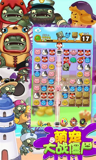 萌宠大战僵尸是一款萌系的消除游戏,手游画风q萌,不管是小宠物还是僵尸都变成了萌萌的风格,让玩家有非常好的游戏观感。游戏有超多关卡,每个关卡的怪物都会不一样,玩家需要用自己的智慧将三个相同的宠物放到一条线上,每个特殊的宠物都在最好的位置上才能过关,来闯关吧。