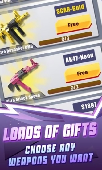 2、卡通世界,刺激战斗对决,射击比拼,去击败更多的敌人。