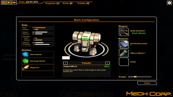 一款回合制棋战策略类单机游戏。这款游戏拥有精致出色的游戏画面,游戏内容丰富,玩法新颖有趣,玩家将在游戏中发展你的机甲公司,并指挥机甲小队在太空中进行作战。