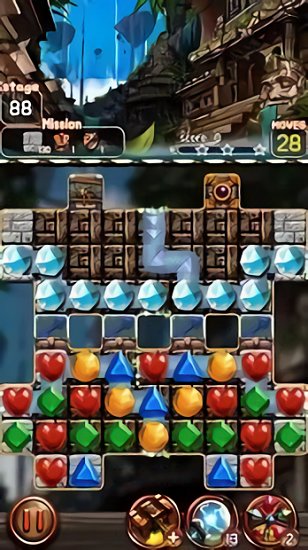 三消游戏,它将古老的文明带入深丛林中。匹配三颗珠宝,将它们炸开。