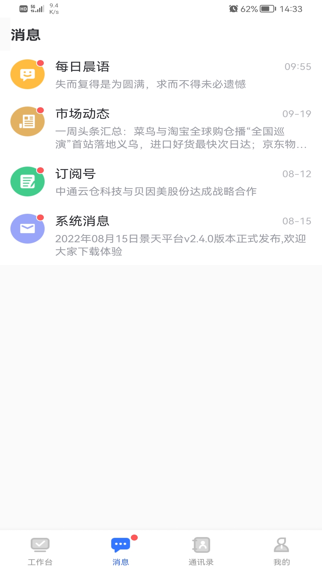 景天平台是中通云仓科技有限公司专为企业内部打造的一款移动办公平台,帮助企业降低管理成本,提高办公效率,实现移动化的工作方式。并且还可以将对员工进行更好的分派,随时了解员工的最新动态,让企业更好的在线进行管理员工,还能帮助员工完成每天的考勤,为大家的工作带来更多的便利!