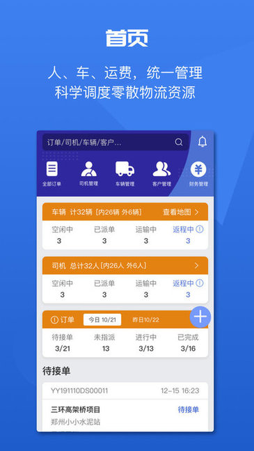 人、车、运费,统一管理,科学调度零散物流资源