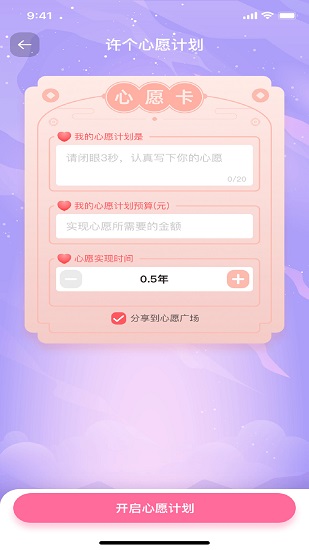 2、用户许心愿,可以帮助用户实时跟踪心愿实现进度;