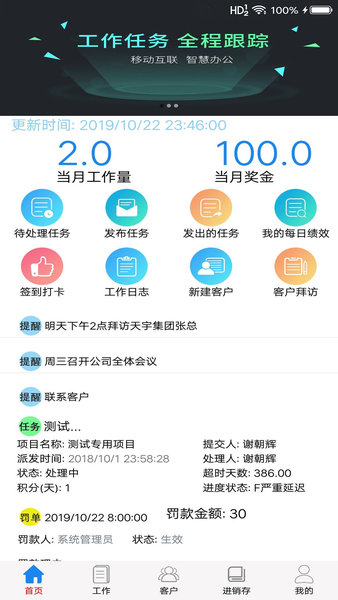 平台为企业提供简单易用的日常管理功能,企业只需要简单开通就可以马上享受到完善易用的企业管理系统,系统特别提供完善的任务跟踪管理、绩效考核、企业罚单管理等特色功能模块。系统全面整合了oa、erp、crm等功能,并可以与企业现有信息系统进行数据通讯协作,彻底解决企业信息系统条块分隔、互相孤立的问题。