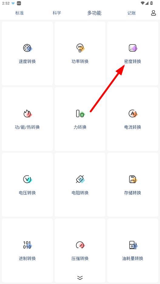 2、在多功能界面里,找到并点击密度转换功能,进入密度转换页面。