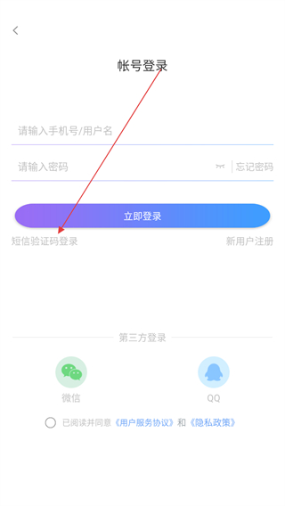 3、点击短信验证码登录选项,进入短信验证码登录页面。