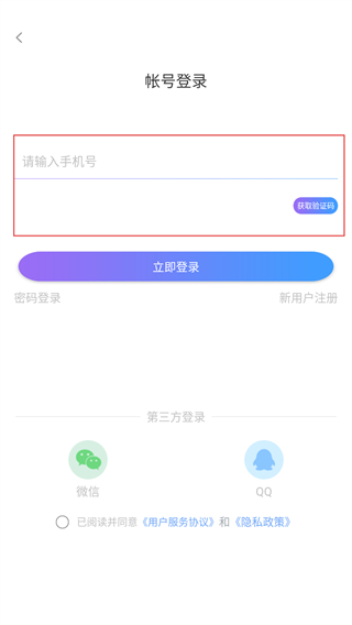4、输入手机号,输入收到的验证码后点击立即登录按钮。