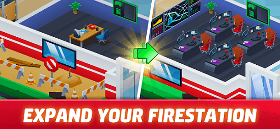 5、升级消防车和急救室,在这个金钱和消防管理模拟器中看到令人兴奋的升级!