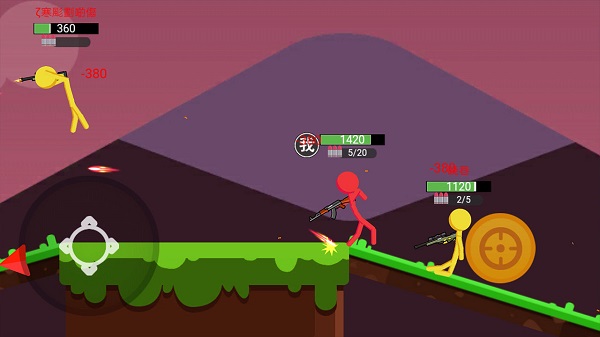 混战火柴人是一款反向操作对射游戏!游戏中玩家使用射击反作用力控制火柴人移动,消灭敌人!游戏中有关卡模式和匹配模式,关卡模式是1v1,1v2等,匹配模式是2v2模式。游戏中还有段位升级,最高段位王者射手。段位越高,能够解锁更厉害的武器和英雄皮肤,赶紧来挑战试试吧!玩法就是通过射击反作用力移动,攻击敌人,升级段位,购买厉害的武器完成全部关卡。