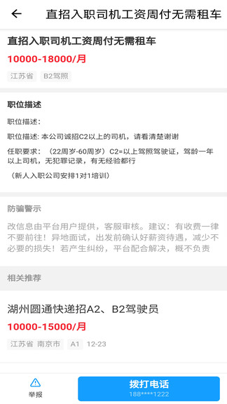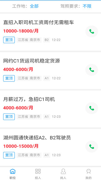 司机快递一家人最新版是一款为了各大司机与想要招聘司机的公司提供沟通平台的软件。广大正在找工作的司机朋友都可以来本平台上找工作,各种招工的详细条件都已经列了出来,司机们只需要打电话直接联系咨询即可,免各种过程。